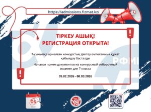Құрметті үміткерлер! Республикалық физика-математика мектебінің (РФММ) 7-сыныбына қабылдау конкурстық іріктеу емтиханы арқылы жүзеге асырылады. Емтиханға тіркелу тәртібі https://admissions.fizmat.kz/ сайтына кіріңіз «Қалай түсуге болады?»…
