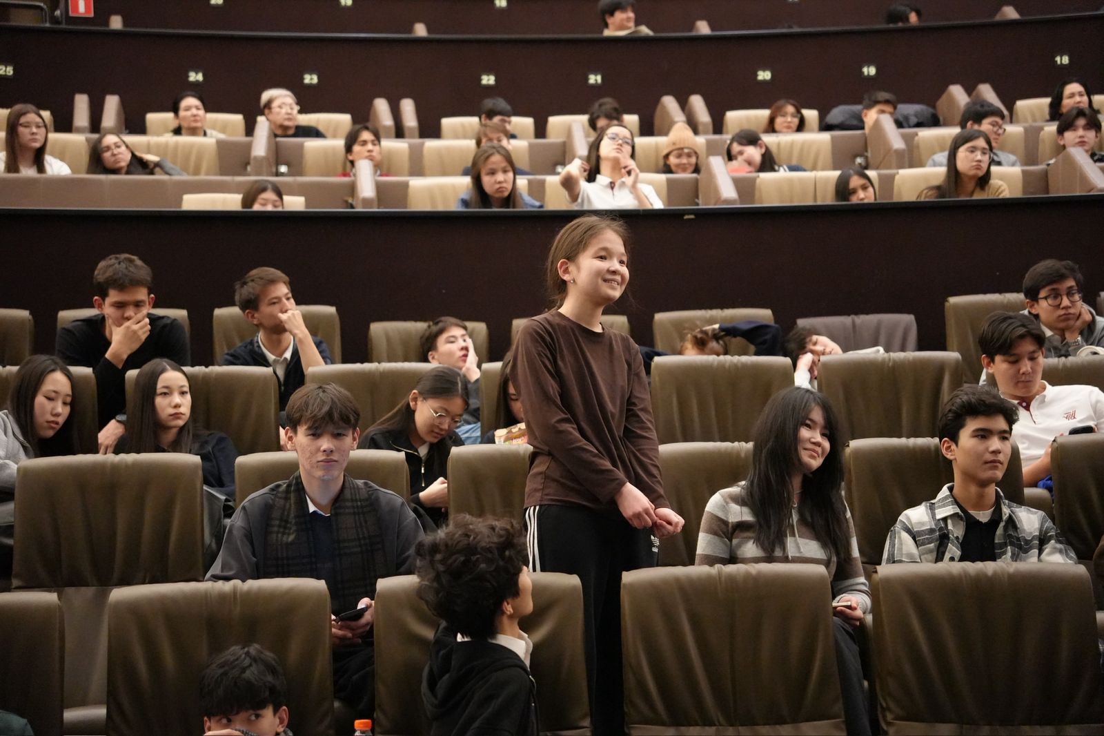 Көрсетілімнен кейін оқушылар алған әсерімен бөлісіп, кинорежиссер Ермек Тұрсыновқа және басты рөлді сомдаған киноактер Ерболат Тогузаковқа өз сұрақтарын қойып, ойларын ашық білдірді.