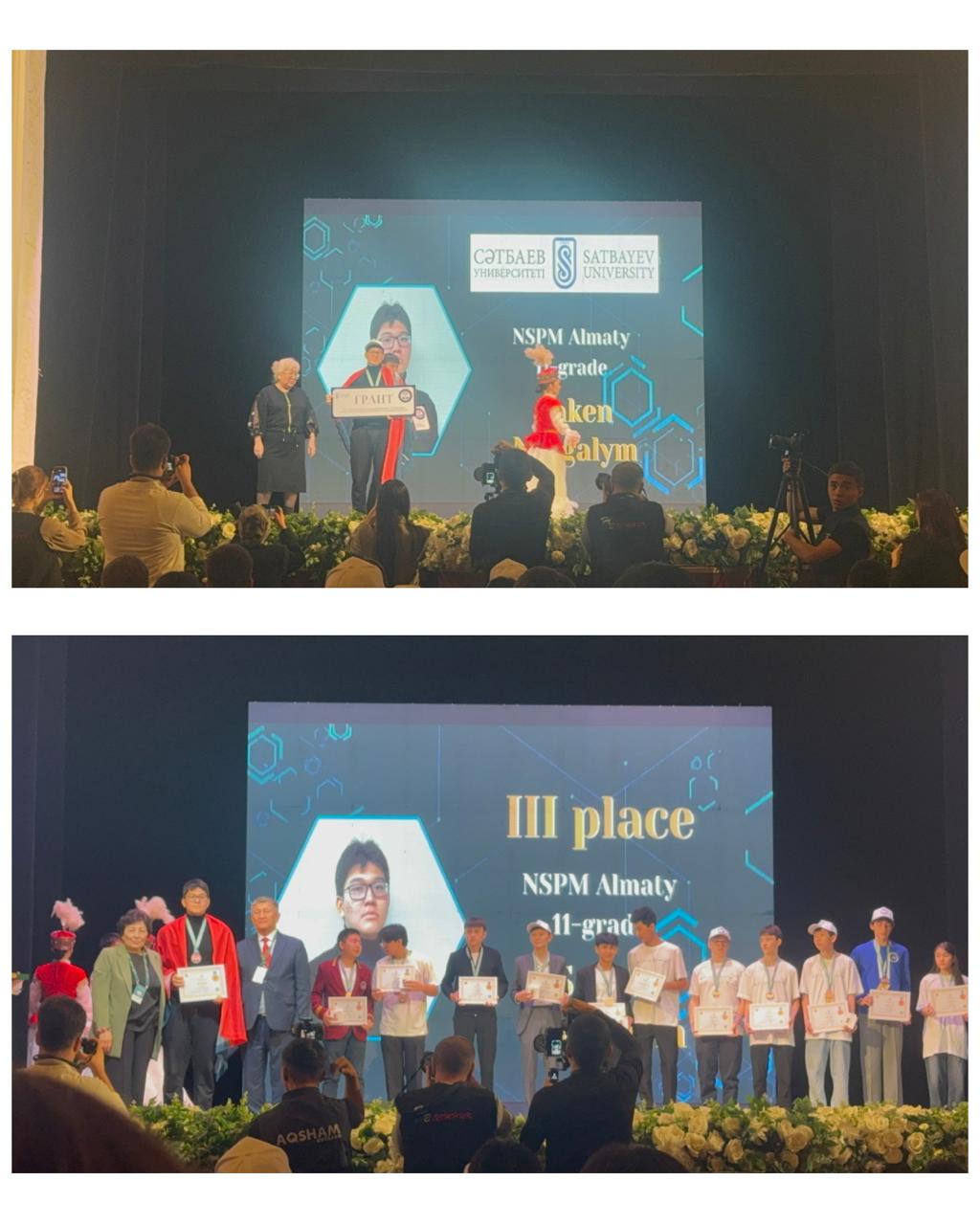•⁠ ⁠Сәкен Нұрғалым, 11C — қола медаль иегері, сондай-ақ Қ.Сәтбаев атындағы Қазақ ұлттық техникалық зерттеу университетінің грантын иеленді
